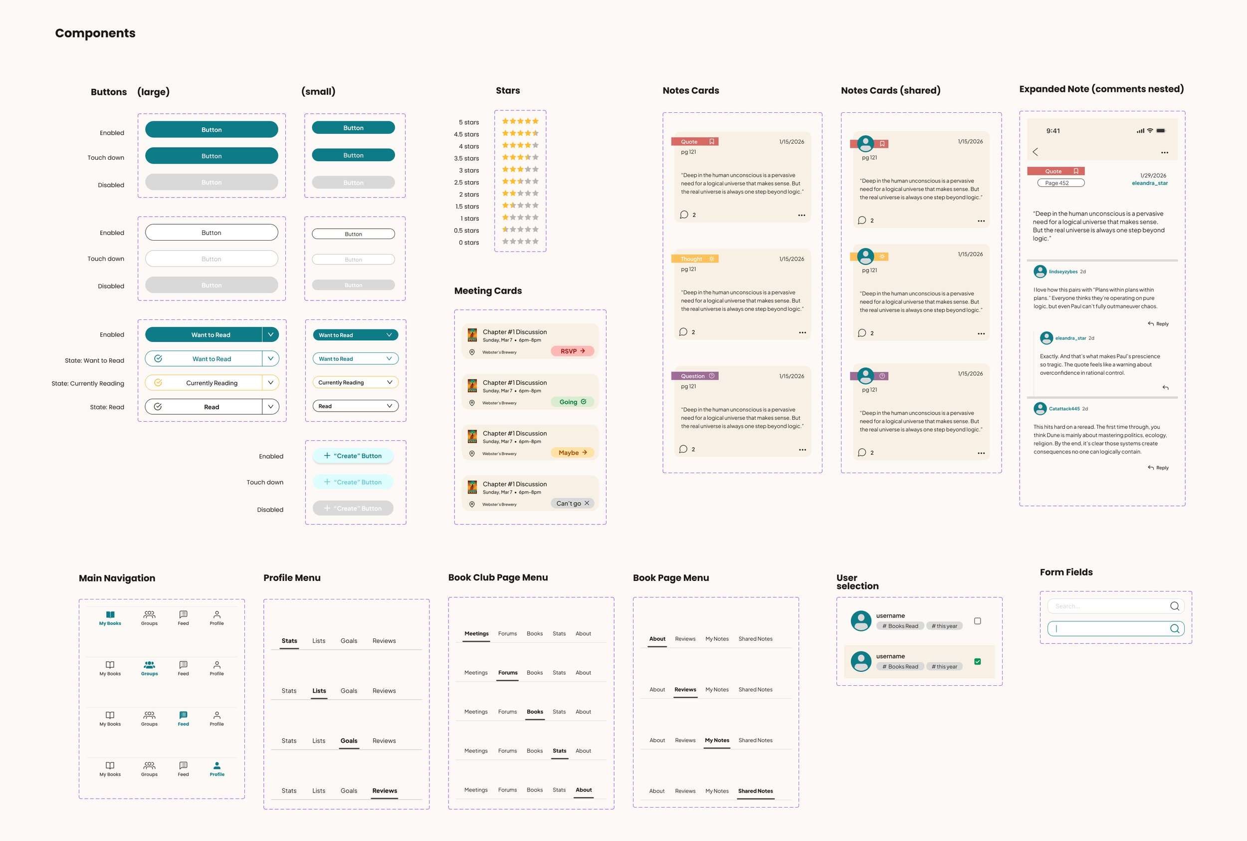 Further testing of information architecture — users found notes on the book page intuitive for solo reading, but wanted to access shared notes from the book club page as well.