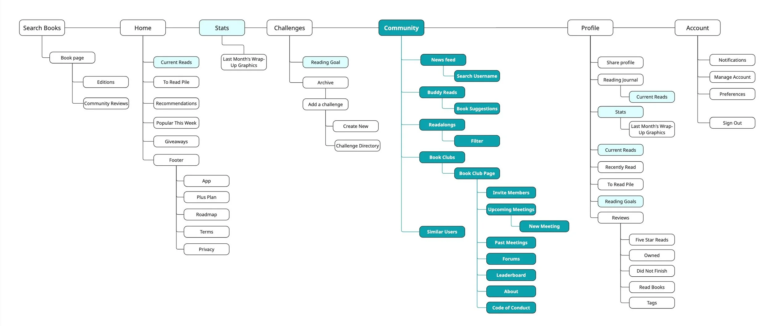 I also noticed some redundant pages for Stats, Current Reads, and Reading Goals that could be quickly consolidated to improve overall navigation.